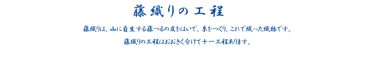 ■伐りとった藤蔓を乾かないうちにツチ(木槌)でたたき、皮から芯をはぎとります。