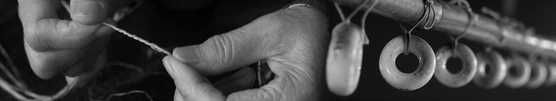 ■フジウミされた糸は、繊維の端同士を撚り合わせたもので、全体にはまだ撚りが掛かっていません。イトグルマ(糸車)で全体に撚りを掛けて糸を強くします。